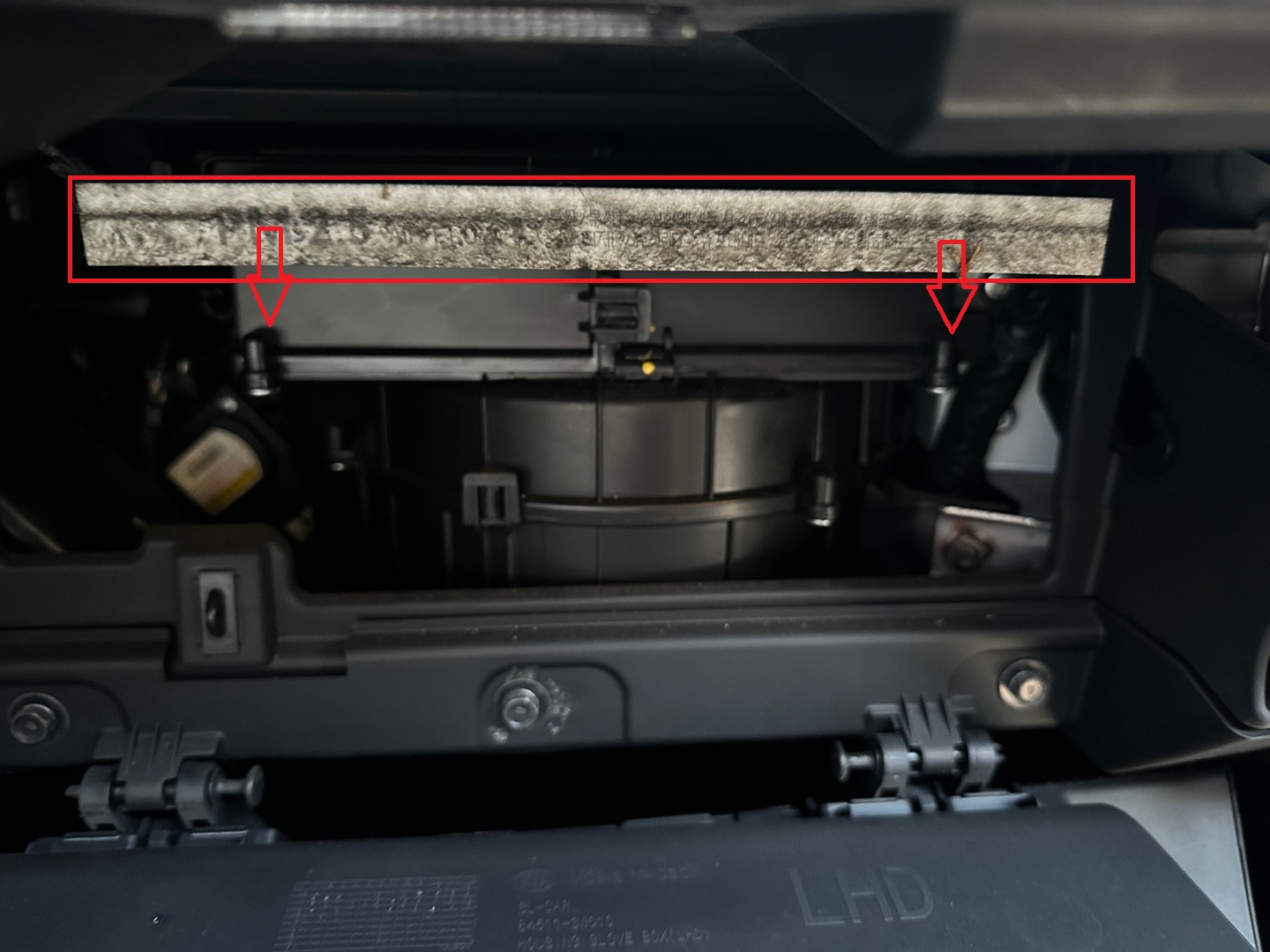 글로브 박스를 분리하면 그 속에 이렇게 에어컨필터 커버가 있다.