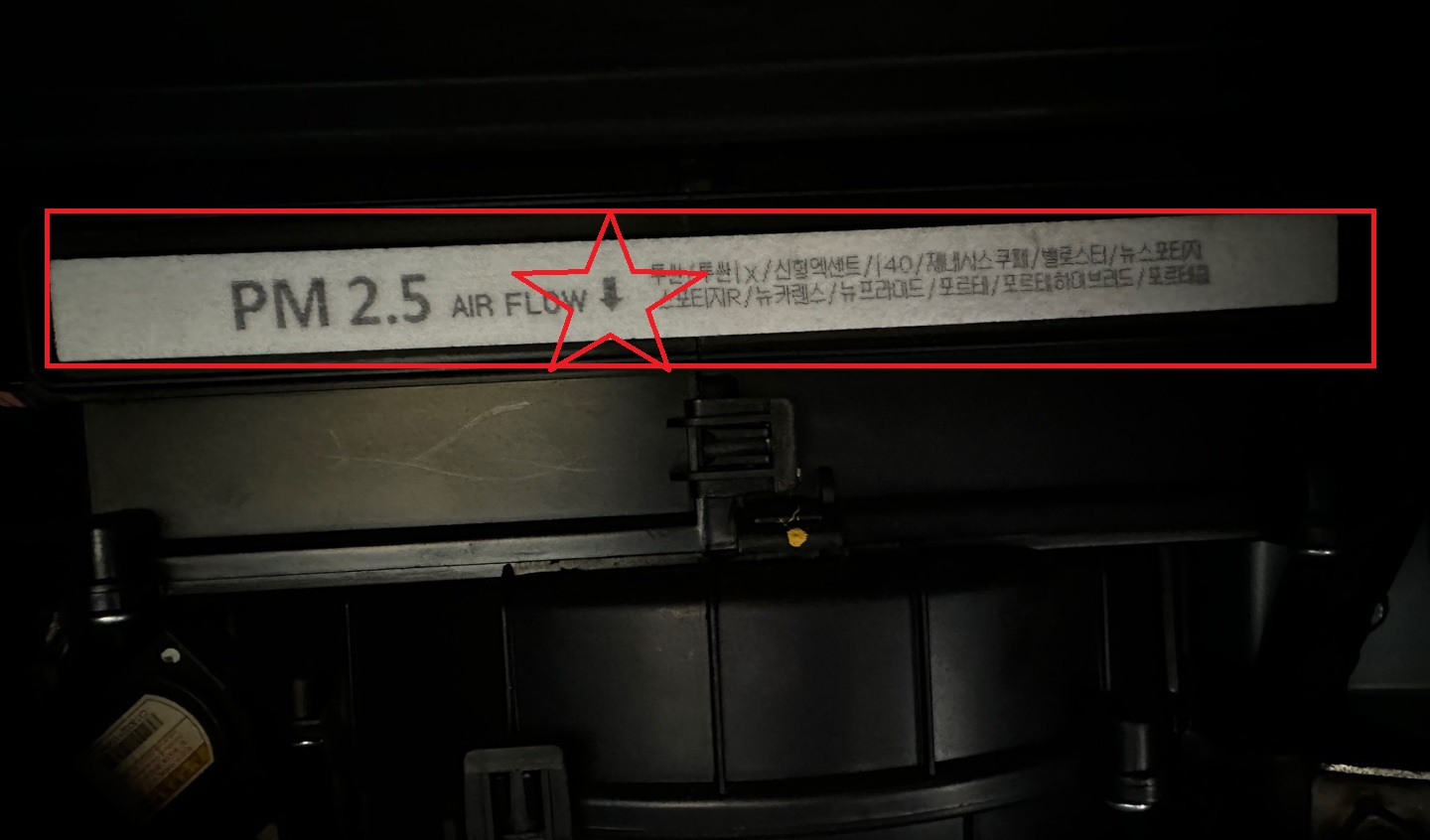 다른 차량의 필터와 함께 보관하고 있던 터라 걱정했는데 다행히 옆면에 차종이 쓰여 있었다.