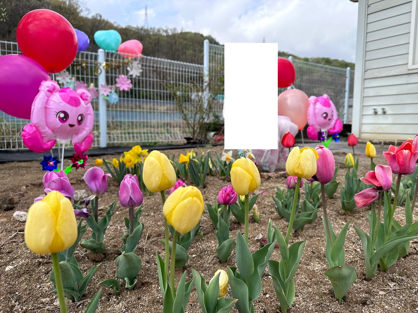 앞줄의 하얀 튤립이 통통하게 피었고, 뒷줄의 빨강, 노랑 튤립들도 예쁘게 피었다.