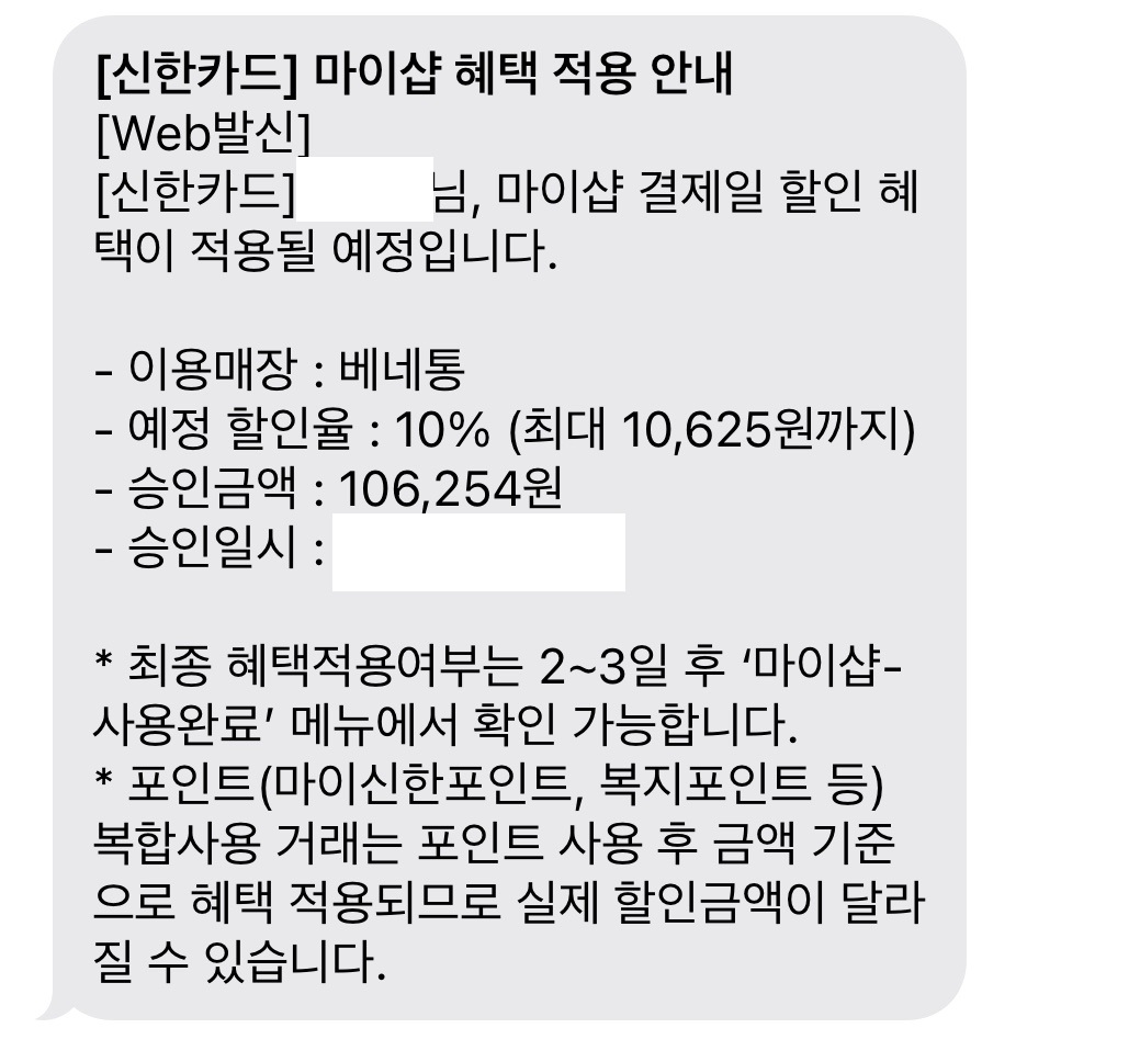 잠시 후 마이샵 혜택이 적용되었다는 메시지가 도착했다.