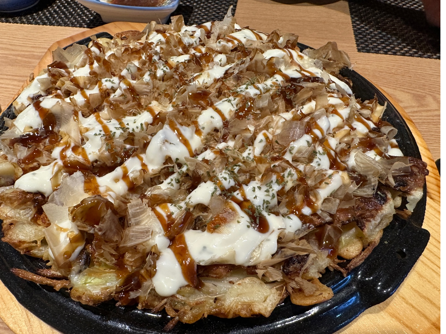사시미를 먹고 나니 오코노미야끼도 완성~