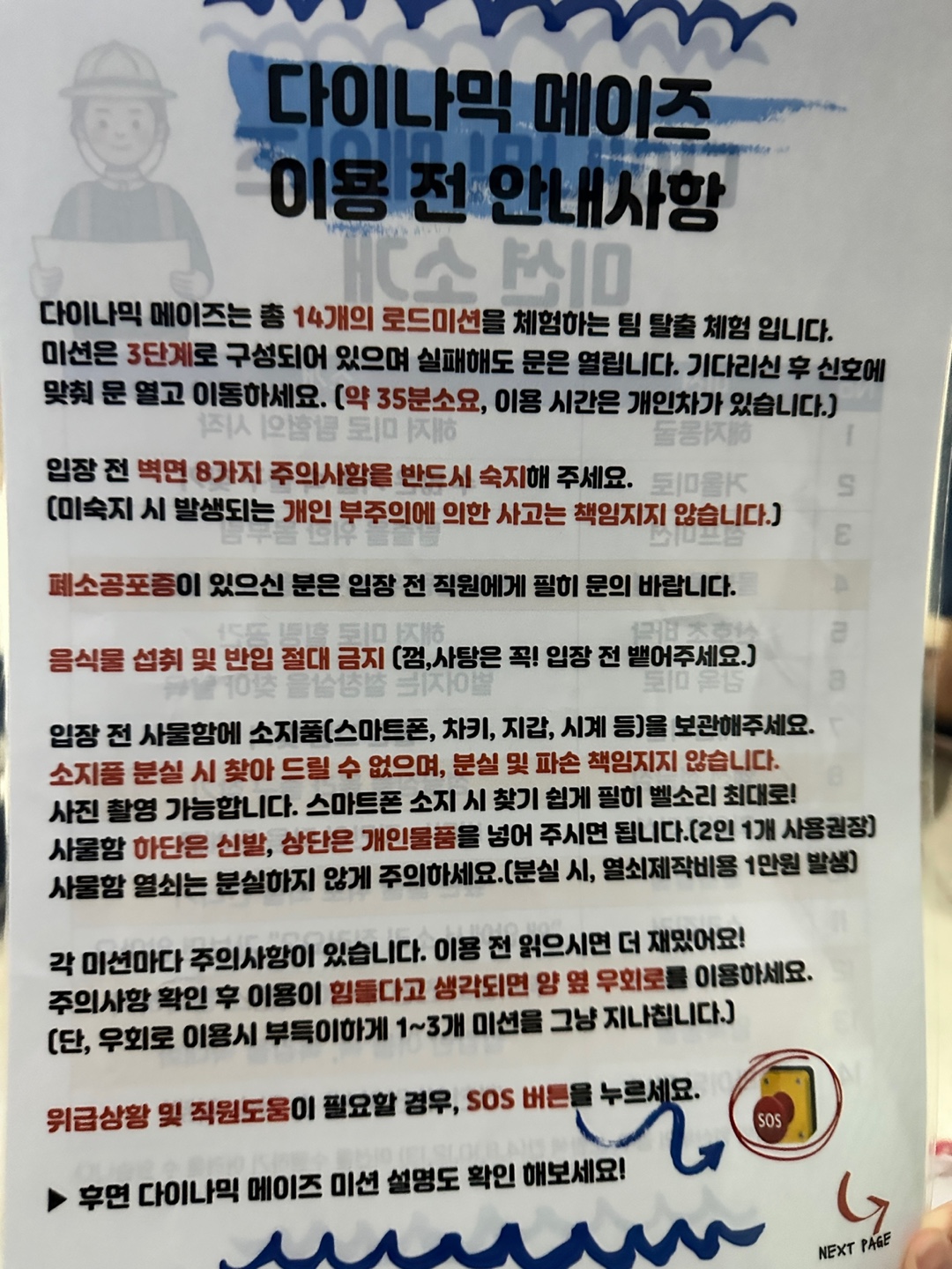 다이나믹 미션소개 안내문을 나눠준다.