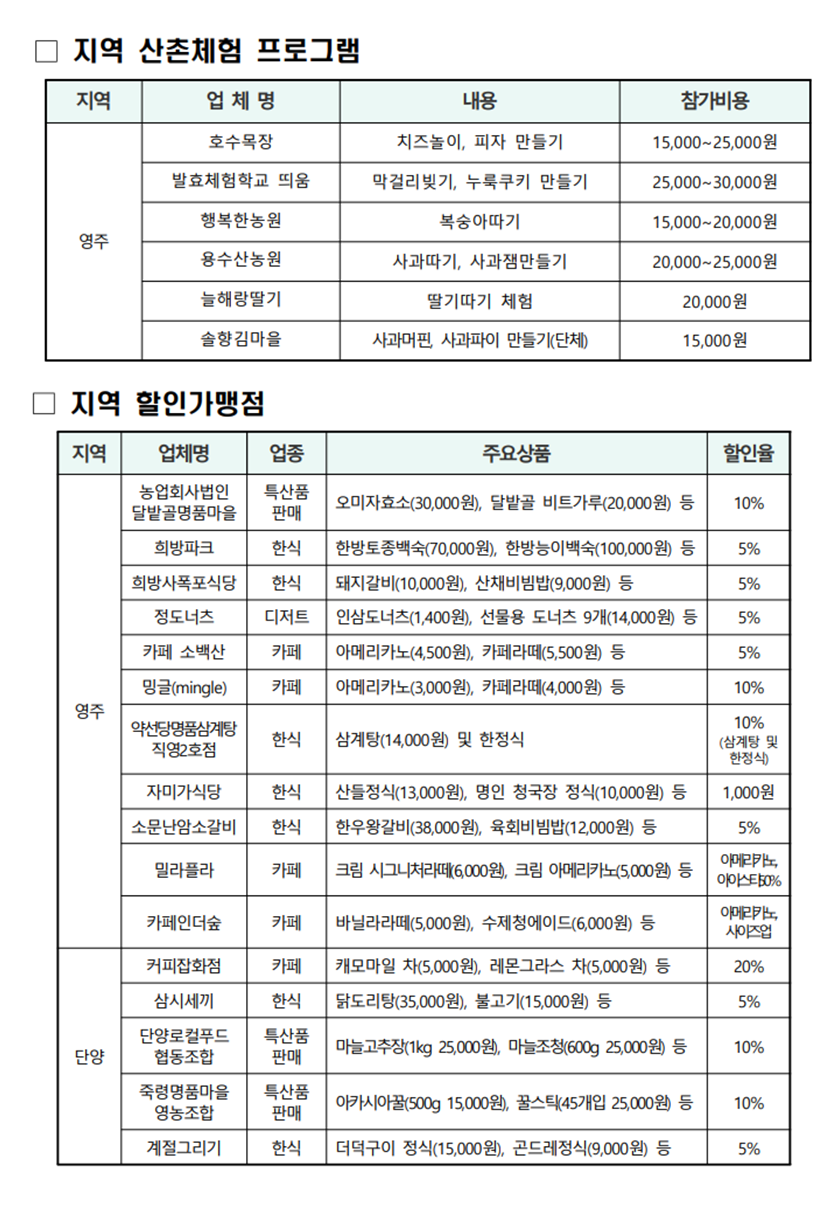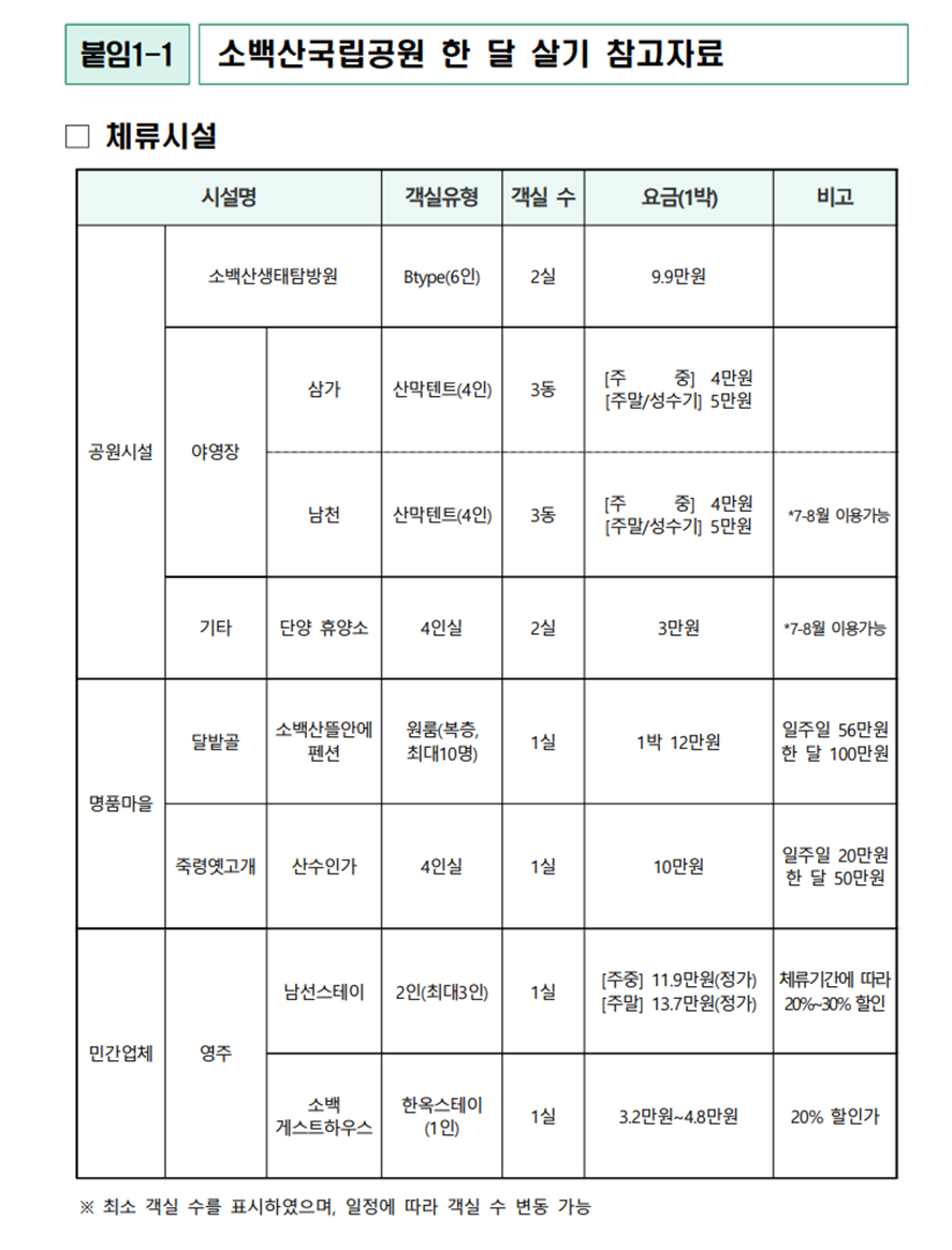 민간업체인 영주 남선스테이, 소백게스트하우스의 경우 정가에서 할인된 가격에 예약할 수 있다.