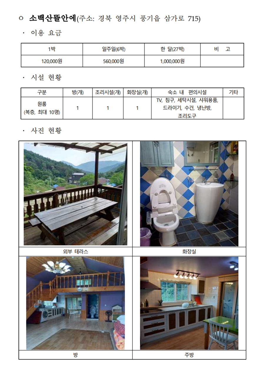 소백산 한달살기 숙소정보