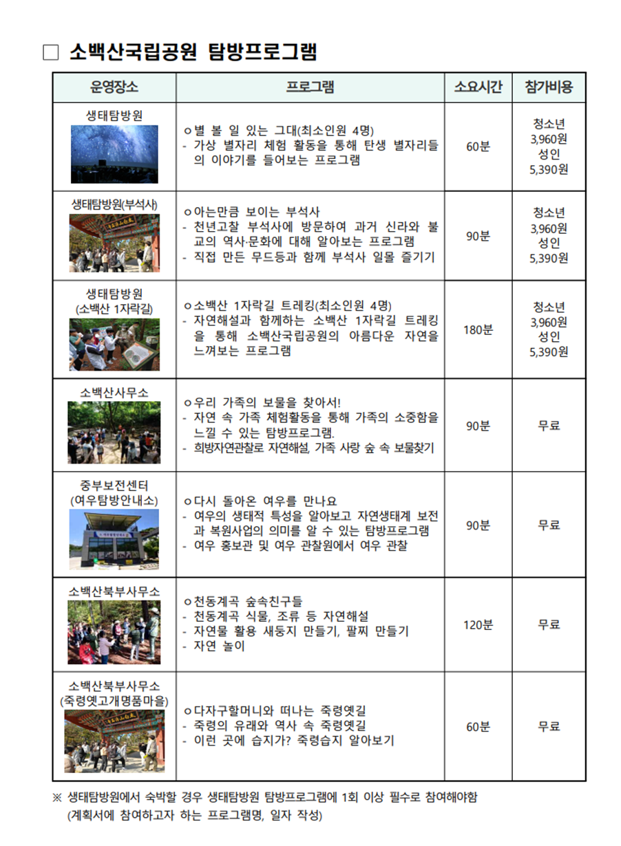 소백산 국립공원 탐방프로그램