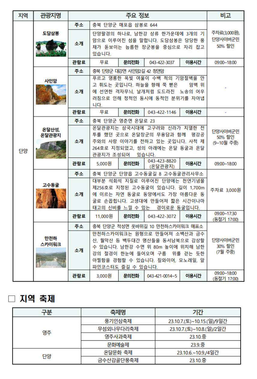 단양, 영주의 지역 여행정보를 살펴보고