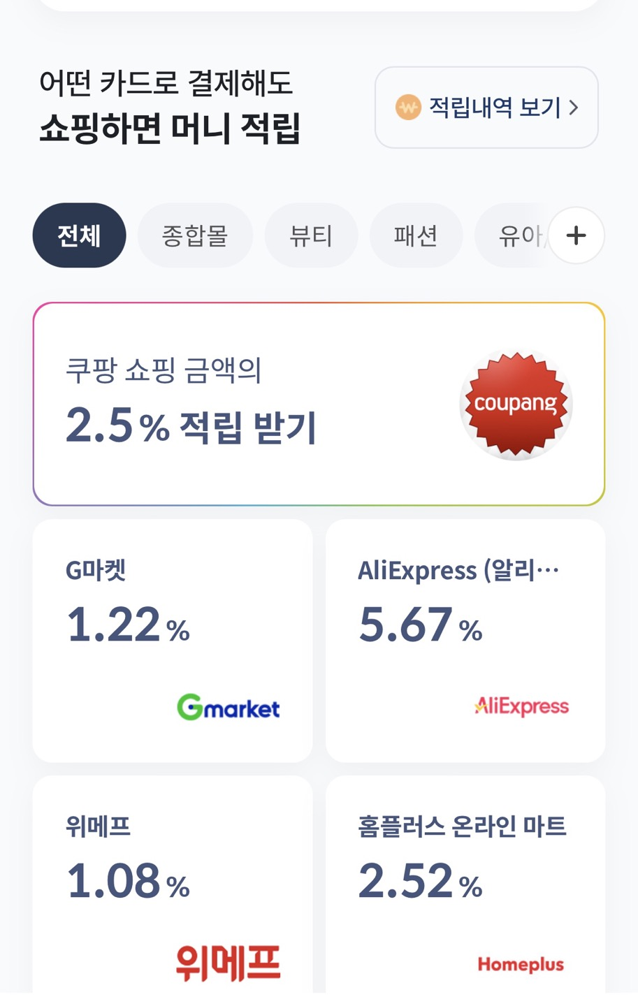- 다른 쇼핑 경유 서비스보다 적립률이 높다.