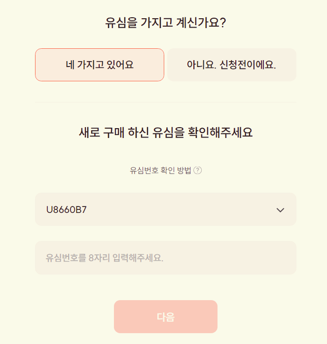 유모바일 유심의 모델명과 유심번호를 입력해보았다.