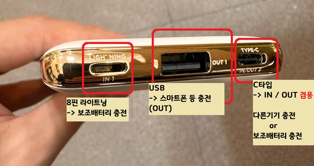 보조배터리에는 IN포트와 OUT포트가 있다.