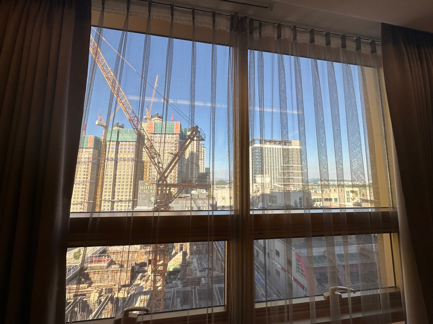 커튼을 열고 크레인이 보여서 당황했다.