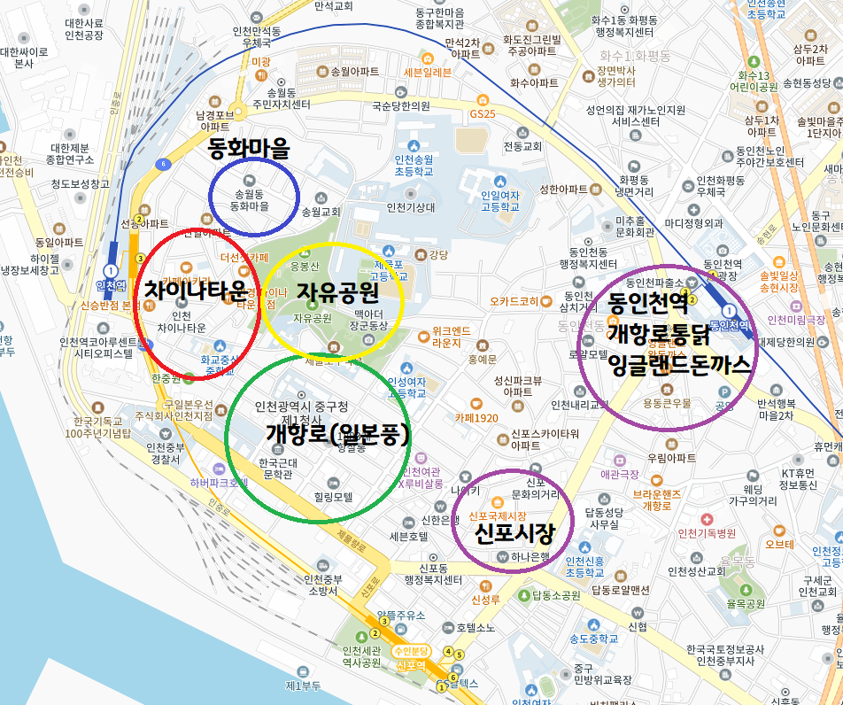 인천 차이나타운 근처에 함께 들를만한 곳들이 모여 있다.