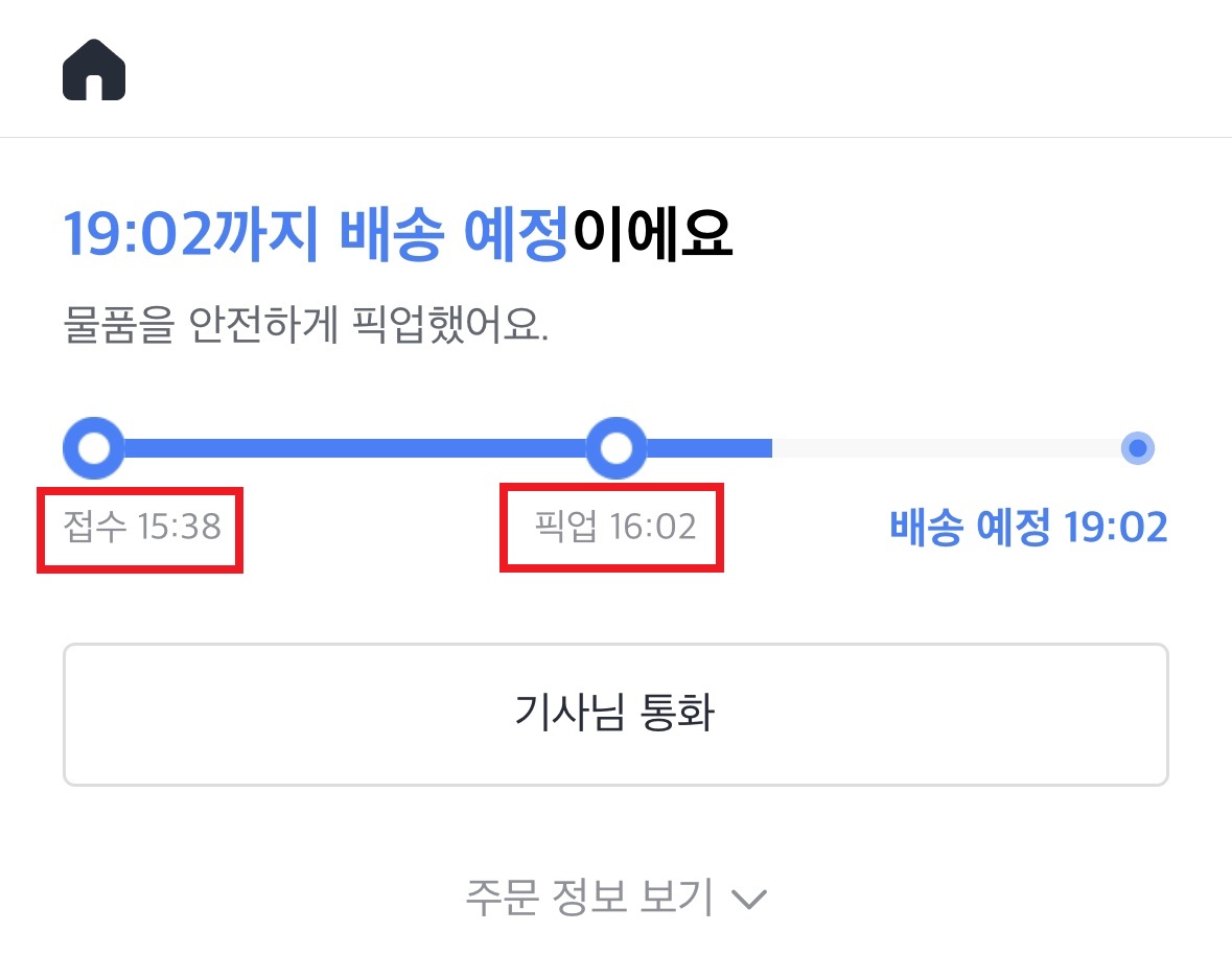 픽업시간으로부터 3시간 이내에 배송 예정이다.