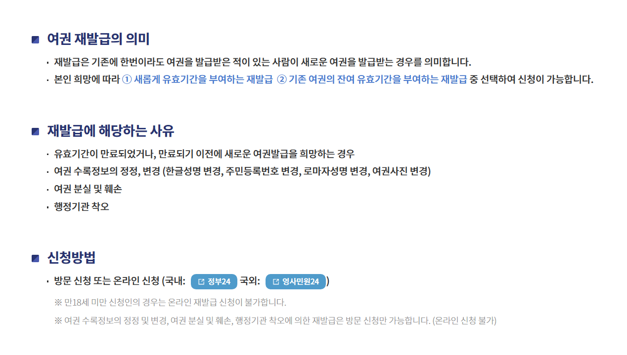 여권 유효기간이 지나서 여권 재발급을 하려고 한다.