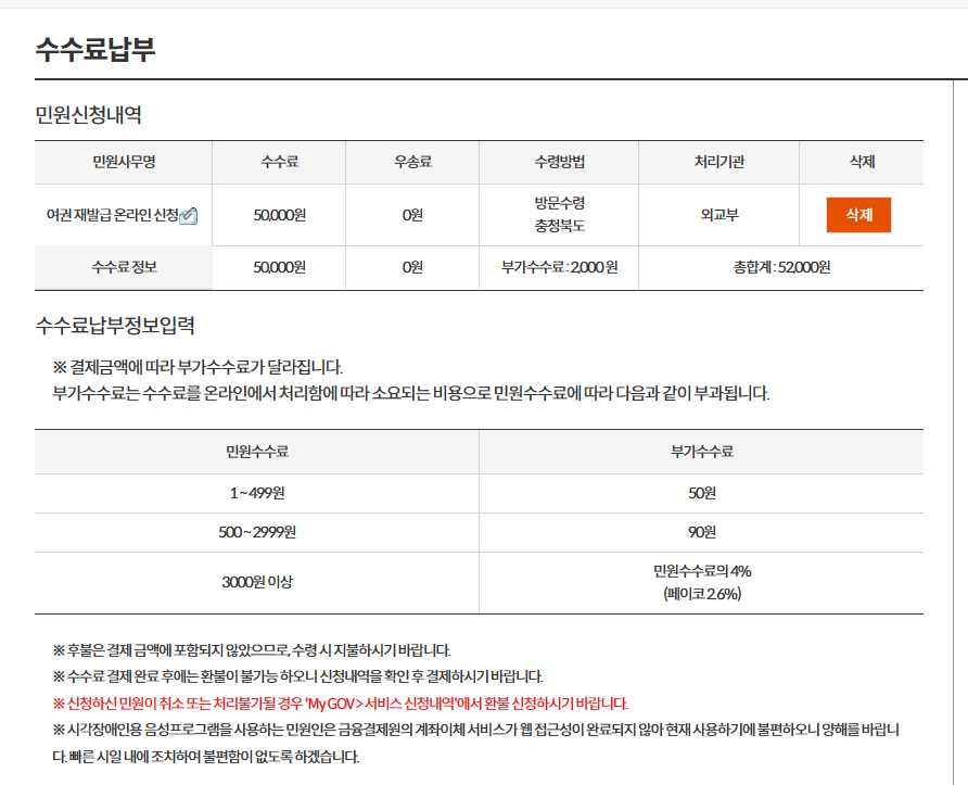 여권 발급비용 외에 수수료도 있다.