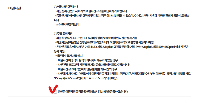 여권사진에 대한 주의사항을 읽고,
