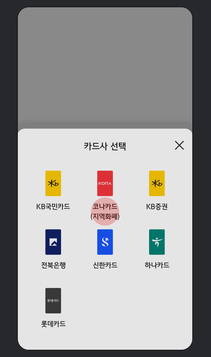 4. 코나카드(지역화폐)를 선택한다.