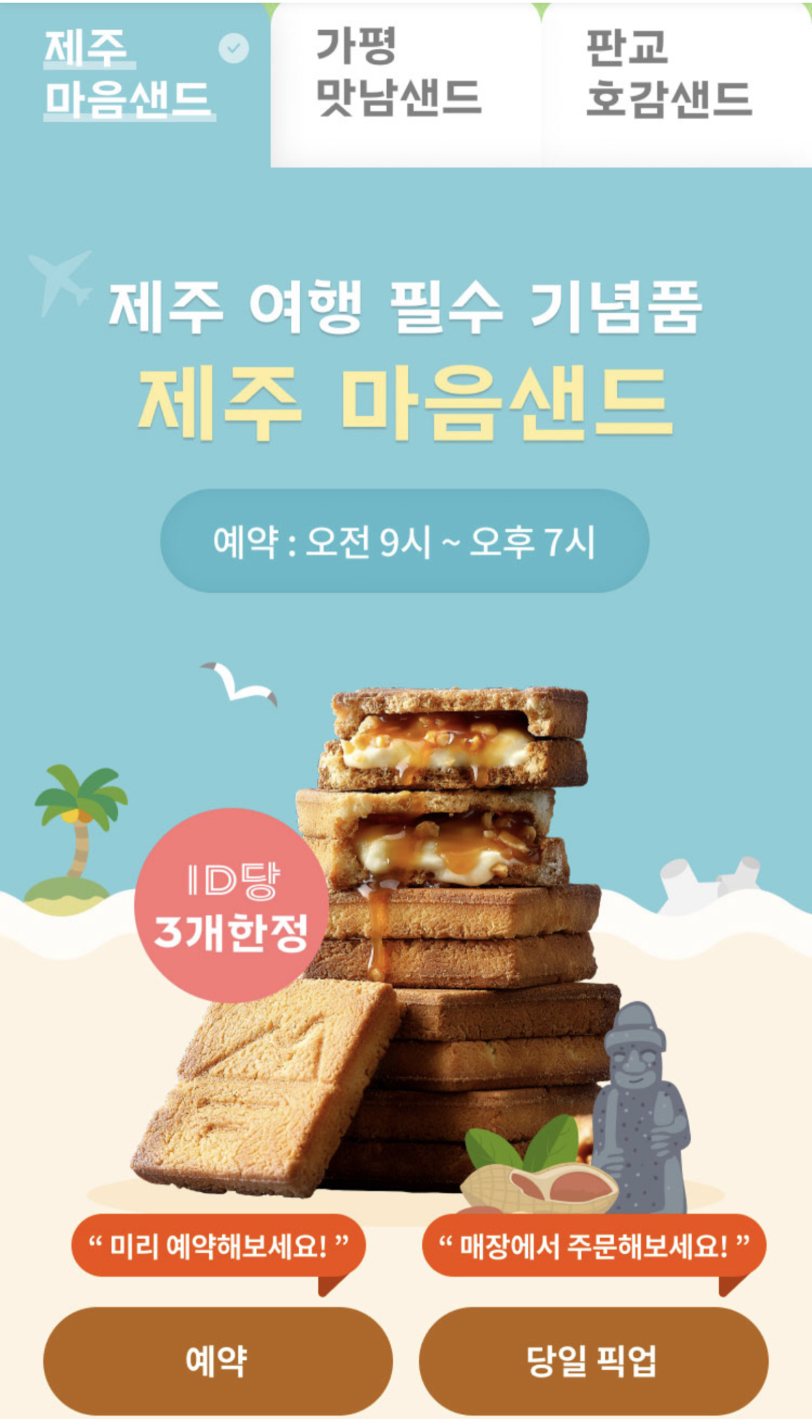 제주마음샌드 픽업예약하기