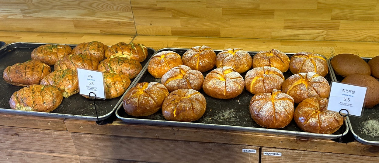 생각보다 빵 종류가 많고, 먹음직스럽다.