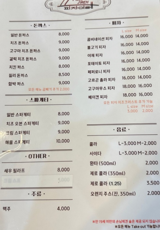 피자와 돈까스가 주메뉴다.