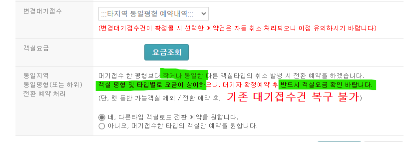 대기 확정 예약할때 객실 요금을 확인해야 한다고 되어 있었다.