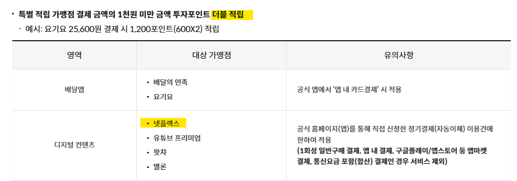 + 넷플릭스는 더모아카드 특별적립이 되는 항목이다.