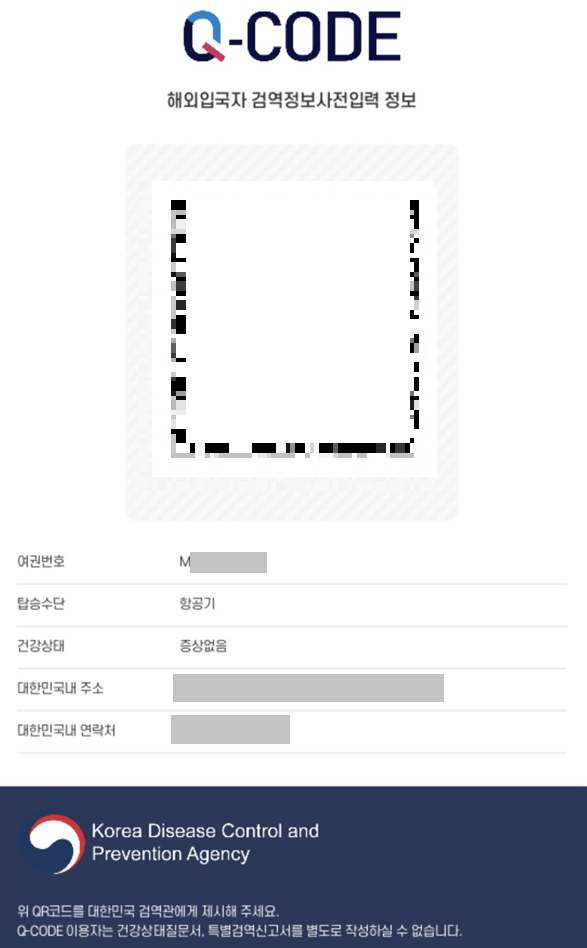 스마트폰으로 QR코드를 찍고, 여권번호와 내 몸상태를 입력한다.