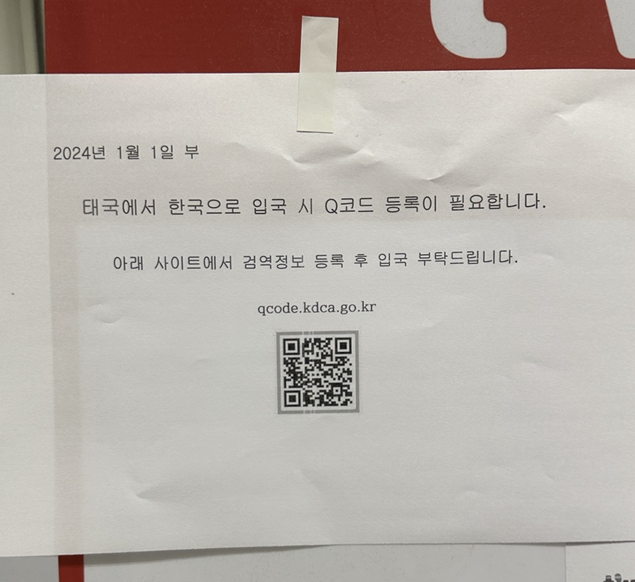 태국에서 한국으로 입국시 Q코드 등록이 필요하다.