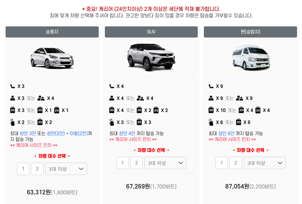 우리는 무조건 편하게 가고 싶어서 2만원 더 비싼 밴으로 선택했다.