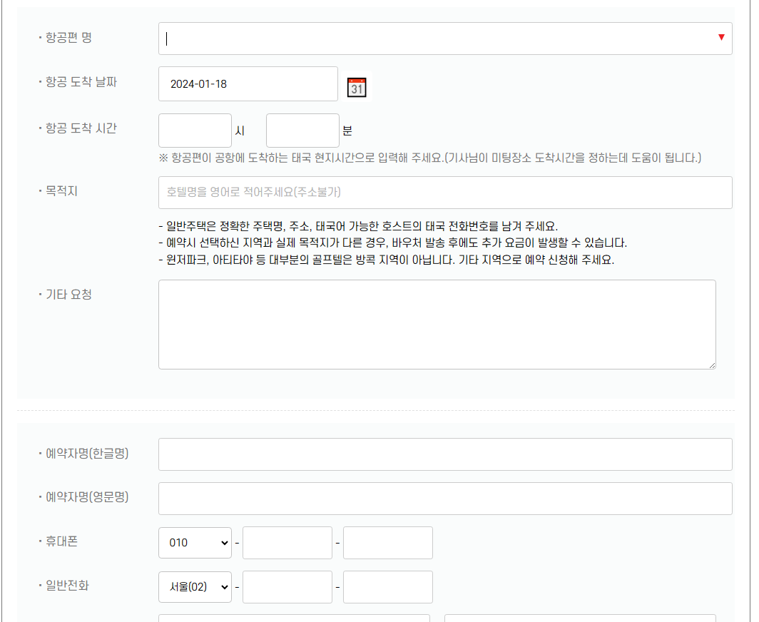 그 다음 내용을 써야 하는데, 항공편 명, 항공 도착시간 등의 칸만 보였다.
