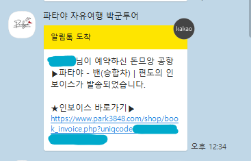 홈페이지에서 예약 신청을 보내고 잠시 기다리면 알림톡으로 인보이스 메시지가 온다.