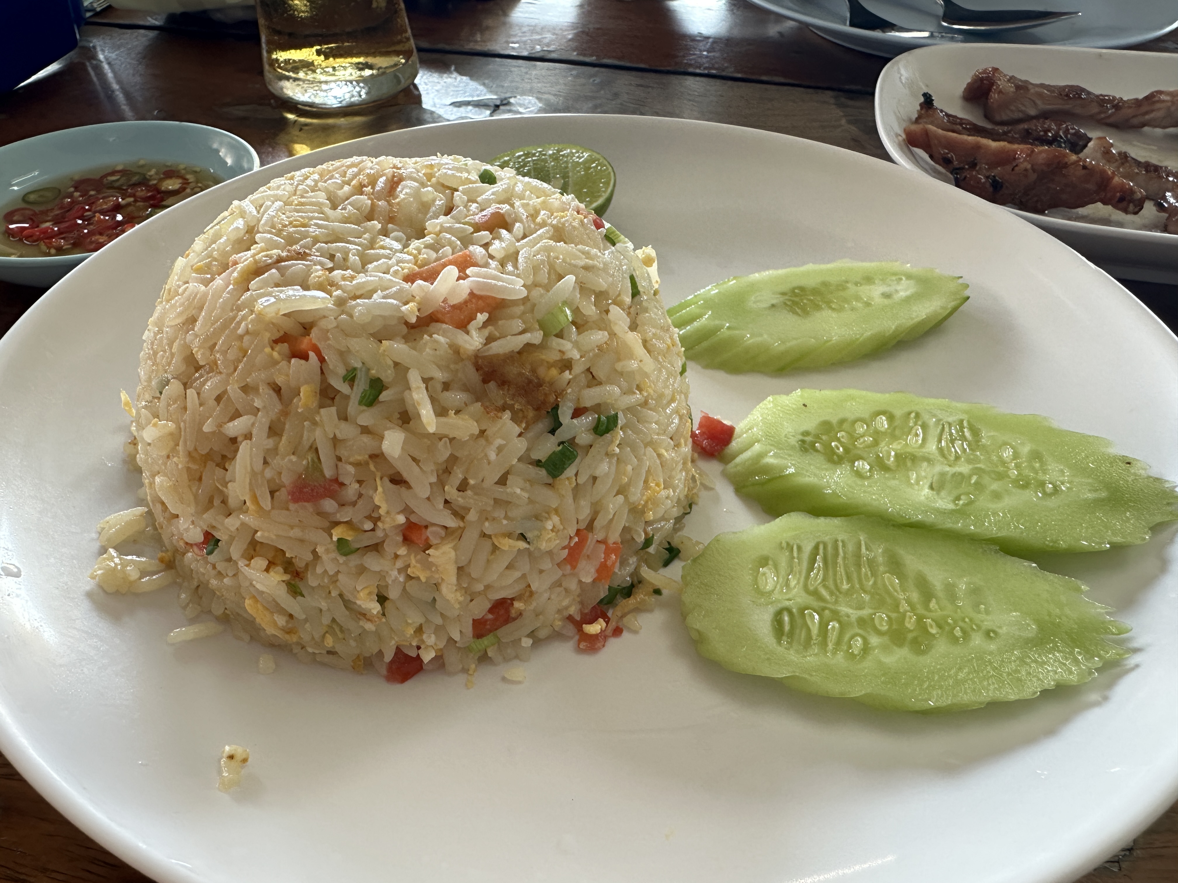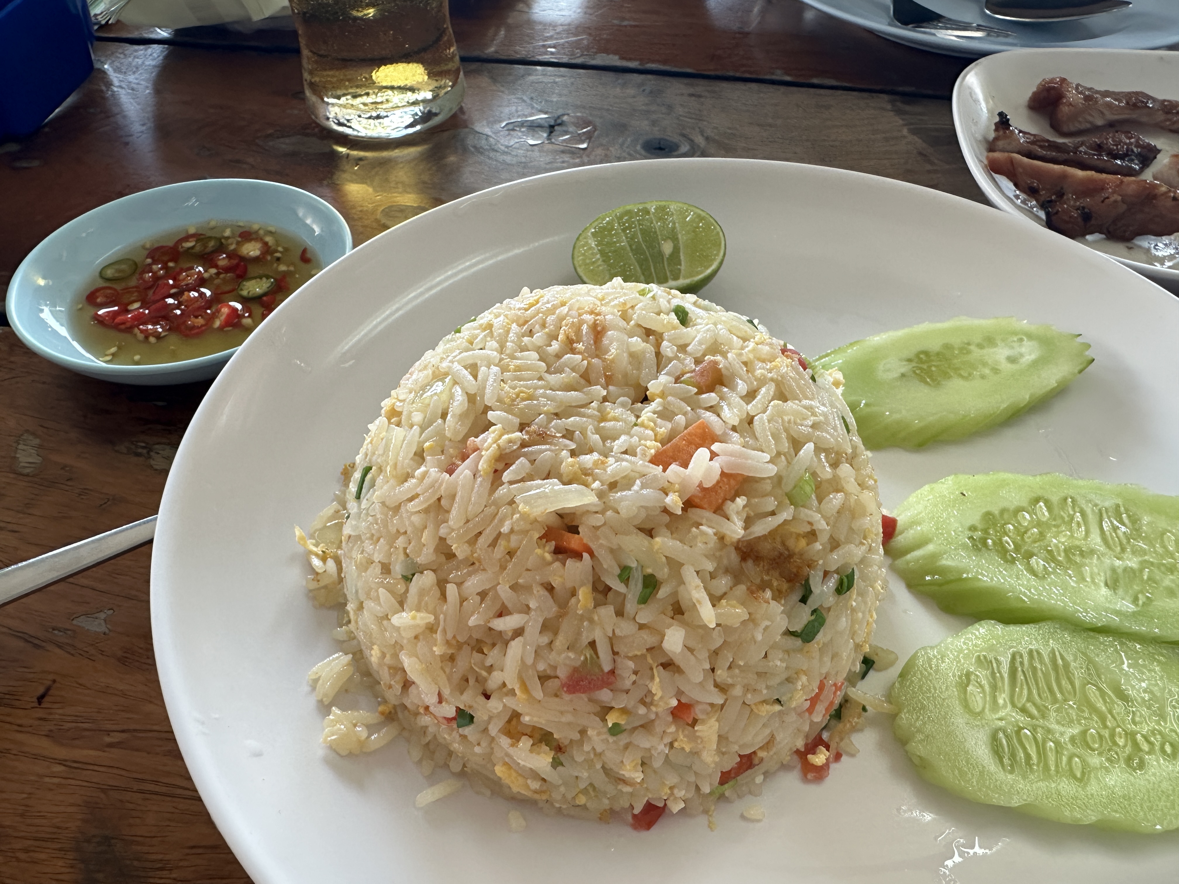 아이는 이 볶음밥에 돼지고기 구이로 아주 잘 먹었다.