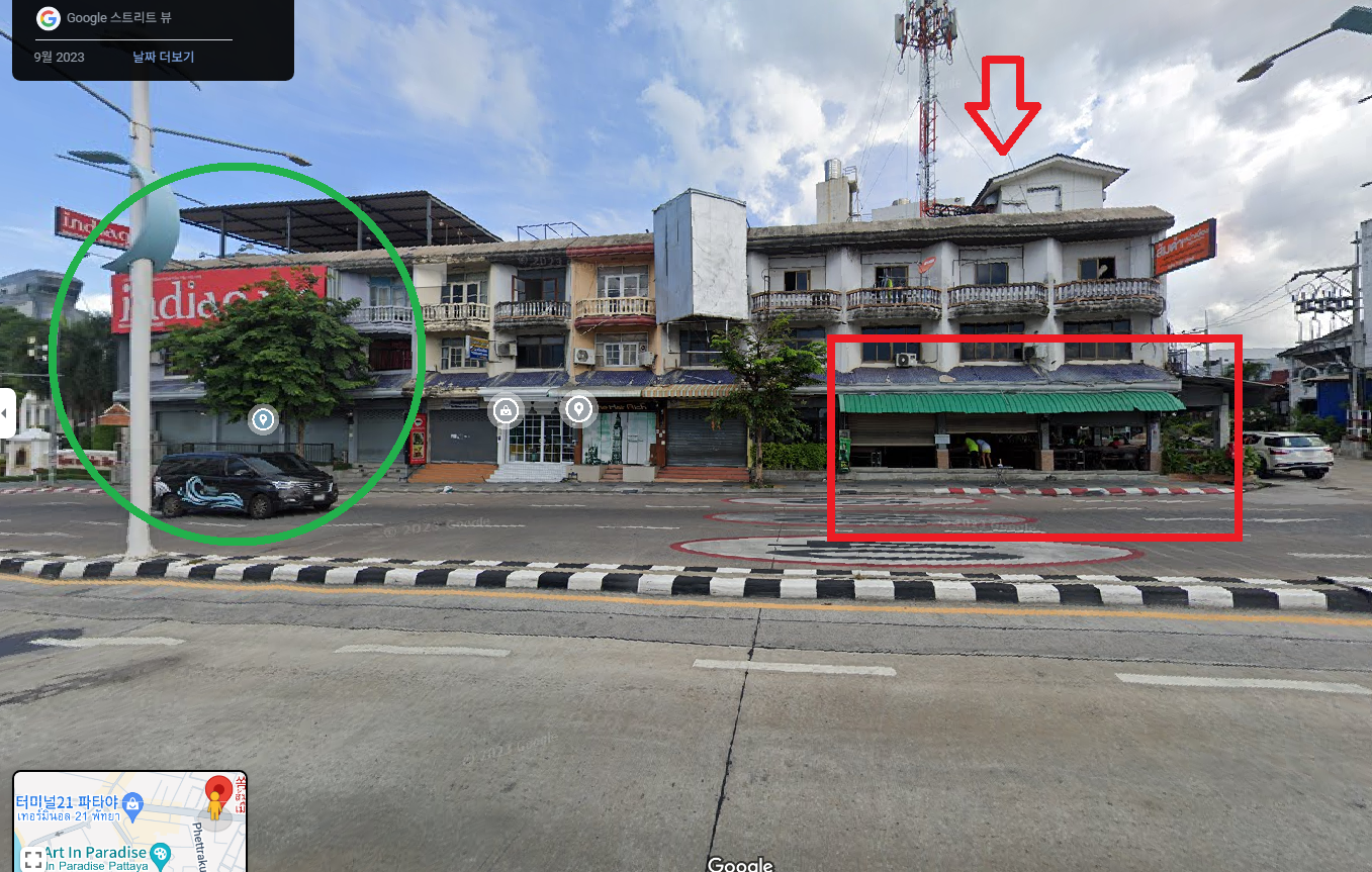 터미널 21에서 큰 도로 맞은편, 동쪽으로 걸어가다 보면 나온다.