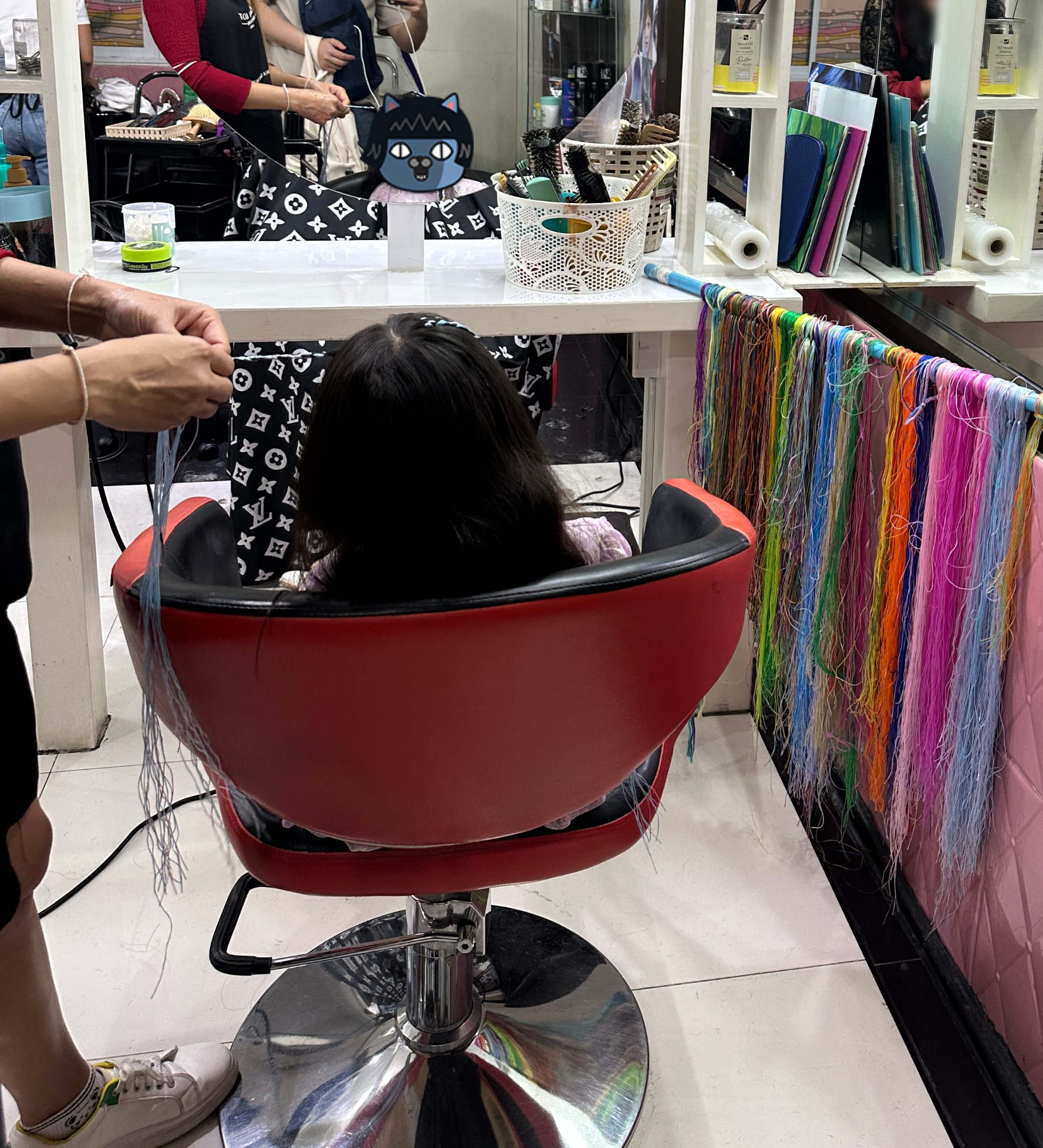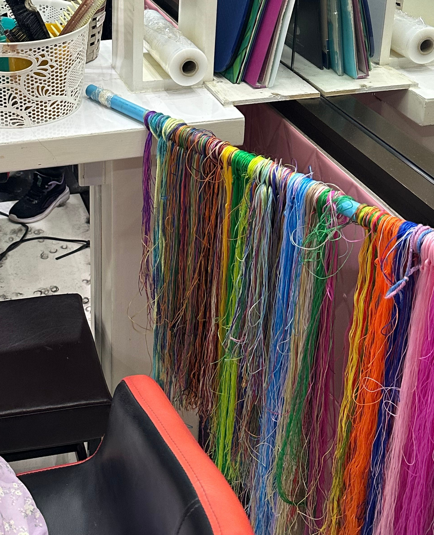 그리곤 미용실 구석의 창고에서 실들을 가지고 나오셨다.