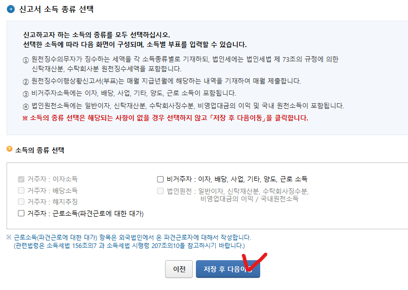 ● 다음 화면에서는 거주자 : 이자소득이라고 되어 있는 것 확인하고 바로 다음으로 넘어간다.