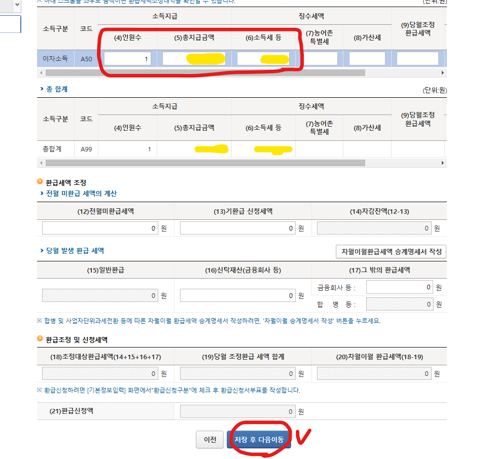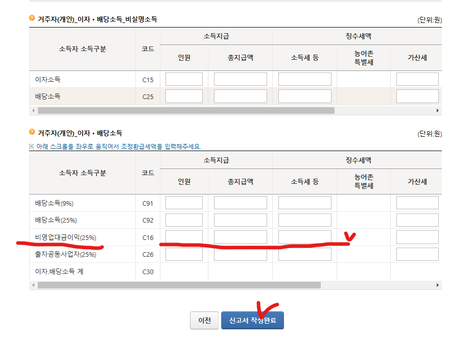 ★ 총지급금액은 이자금액 전체를 입력한다.