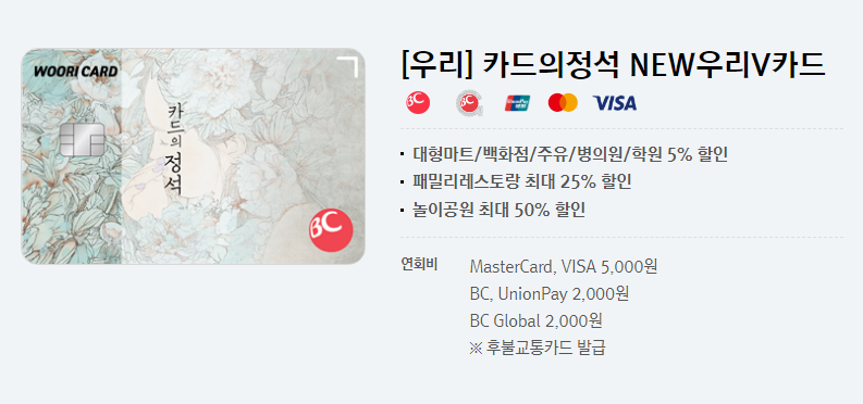 카드 이름은 [카드의정석 NEW우리V카드]다.
