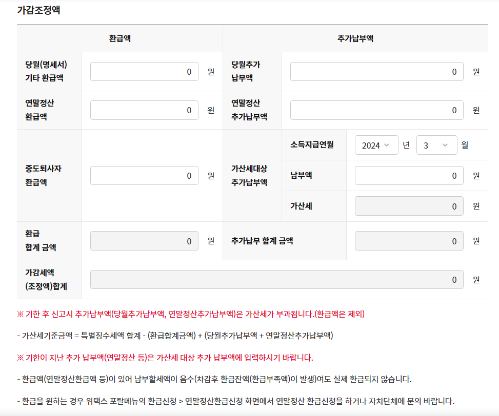 가감조정액에 해당되는 사항이 있으면 입력한다.