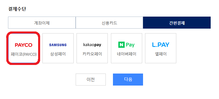 페이코에 등록해놓은 모빌리언스 카드를 선택하고 결제하면 끝.