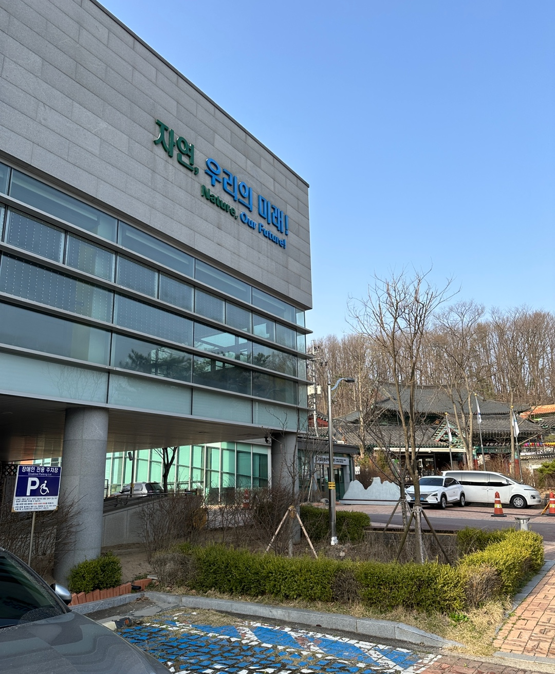 생태탐방원 건물 앞에 주차를 한다.