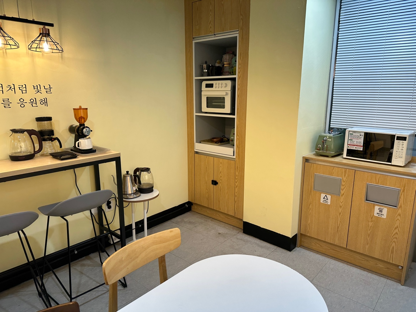 씽크대와 식기세척기도 보였는데, 이름이 붙어있는 컵도 있는 걸 보니 아마 직원들의 휴게공간이기도 한 것 같았다.