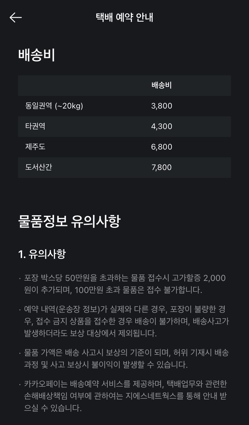 25KG 이내면 3500원 ~ 4000원이다.