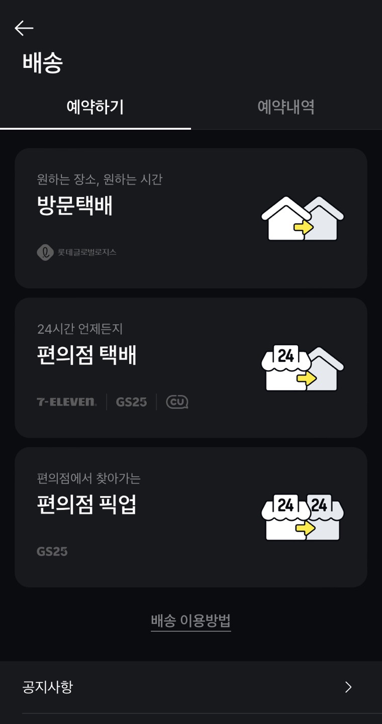 방문수거를 하지 않고 편의점택배를 예약한 후 직접 편의점에 맡기는 방법도 있다.