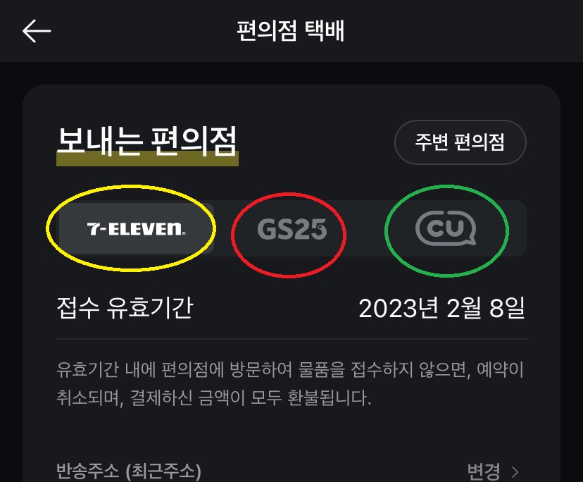 예약을 한 후 접수 유효기간 이내에 편의점에 방문하여 물품을 접수하면 된다.