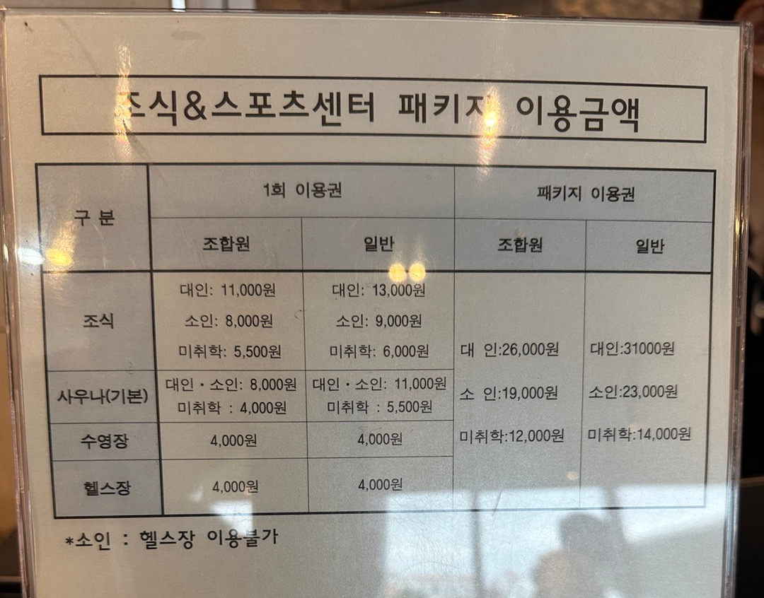 스포츠센터 이용권 = 사우나 + 수영장 + 헬스장