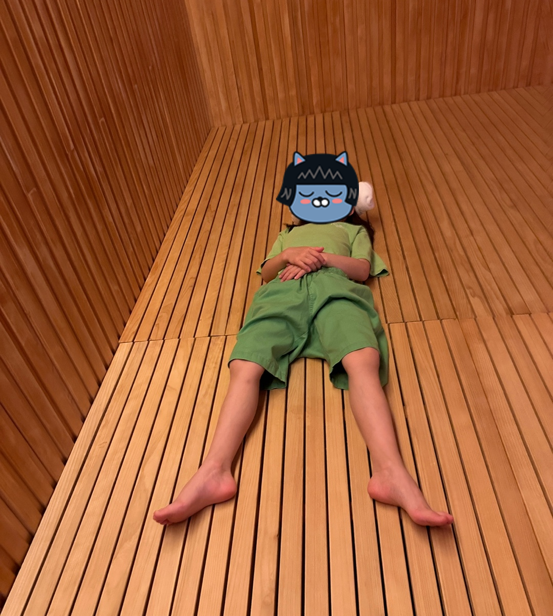 건식 사우나도 있는데 아이와 들어갈만한 낮은 온도의 방도 있었다.