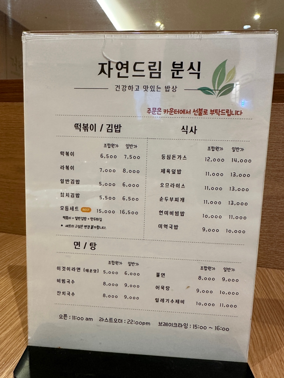 찜질방 매점과 분식도 조합원가와 일반가가 나뉘어 있다.