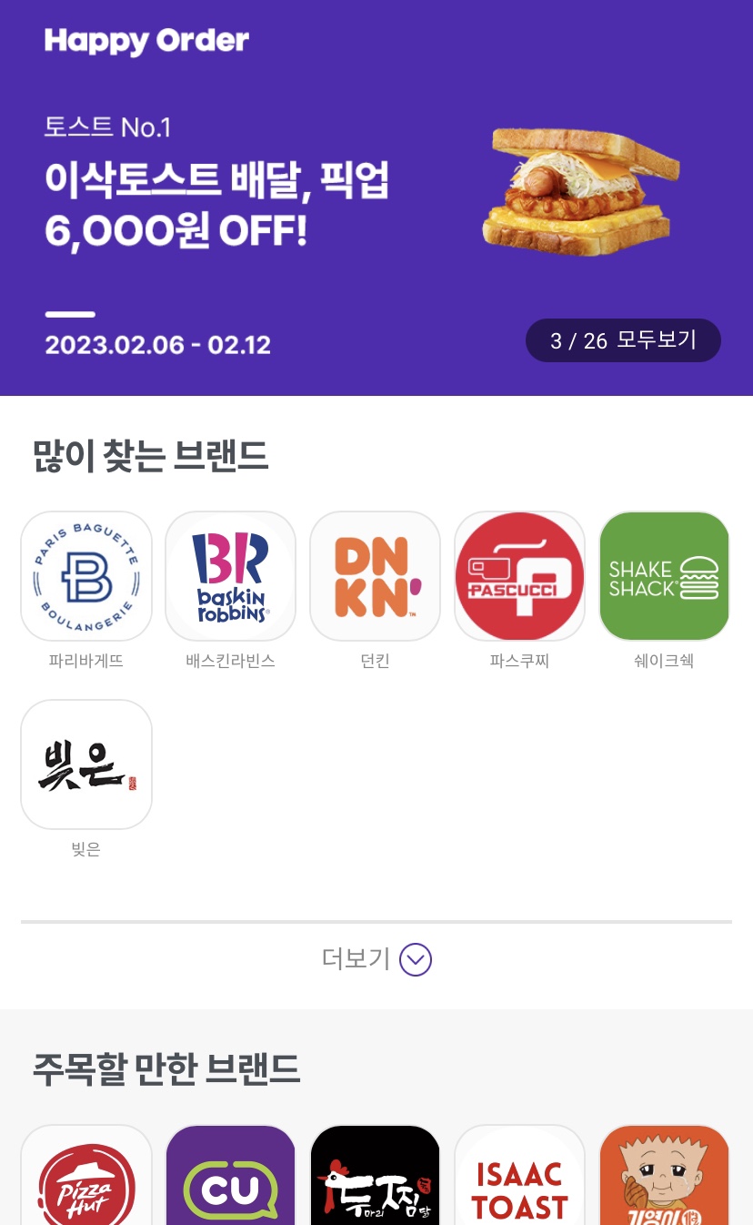 ● 즉 2월 12일까지 매일 할인받아 이삭토스트를 주문할 수 있다.