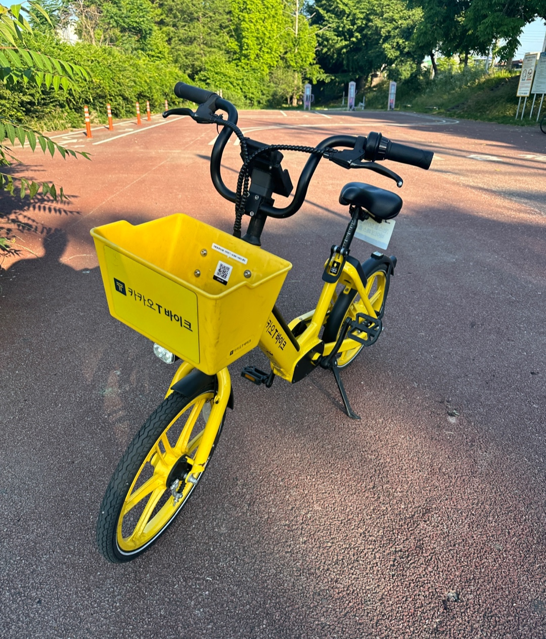 아이 자전거는 가져갔고, 엄빠는 카카오바이크를 타기로 했다.