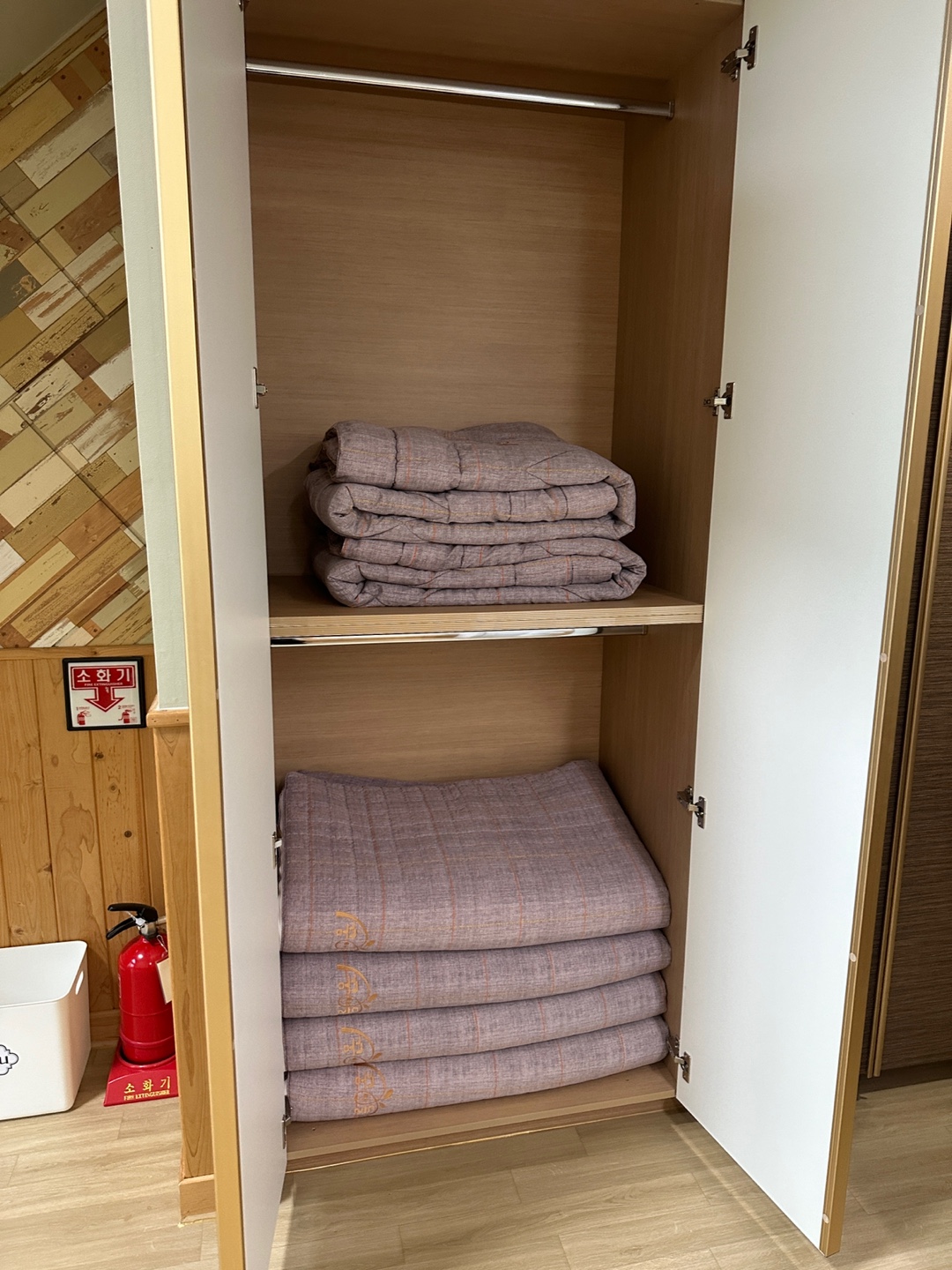 장을 열면 요와 이불, 베개가 4세트 들어있다.