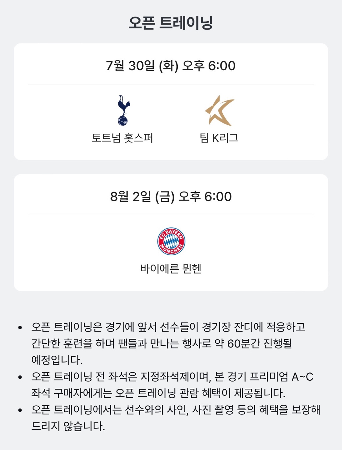 토트넘 vs 바이에른 뮌헨 서울경기 - 8월3일 예매일정은 쿠팡플레이